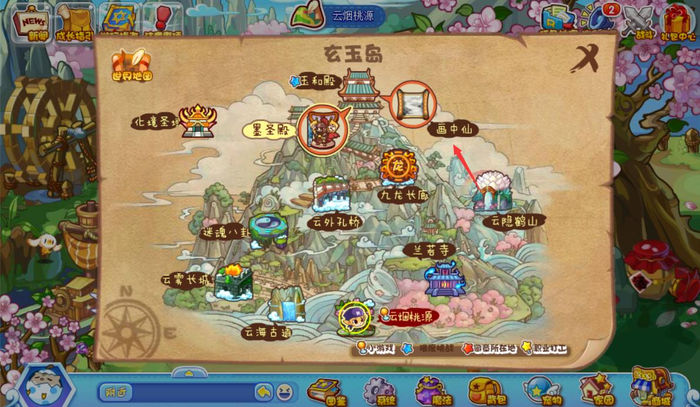 画中仙在玄玉岛内,首先打开大地图,然后点击玄玉岛进入,其位置在最下面。