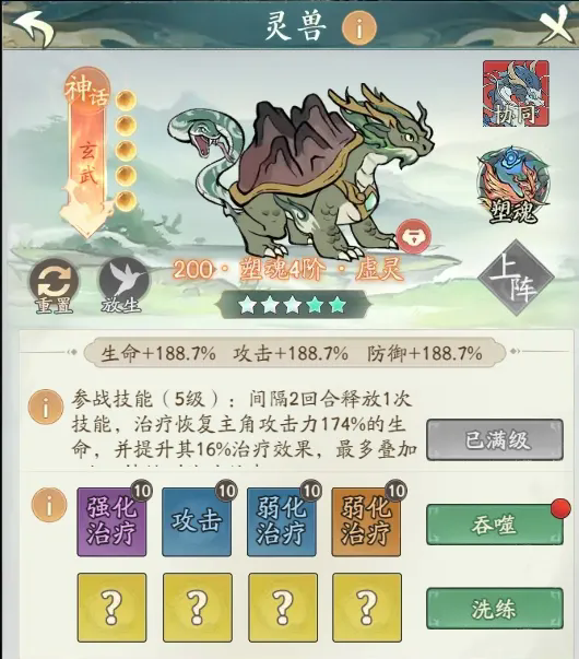 评价:连爆流派本身就是一个强力的万金油流派,加上玄武的恢复以及吞灵的无视减伤机制,可以说是锦上添花,输出高的同时也肉的很。